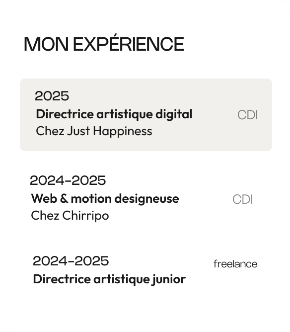 Directrice artistique passionnée de branding, je crée des expériences digitales intuitives. Le motion design ? La cerise sur le gâteau